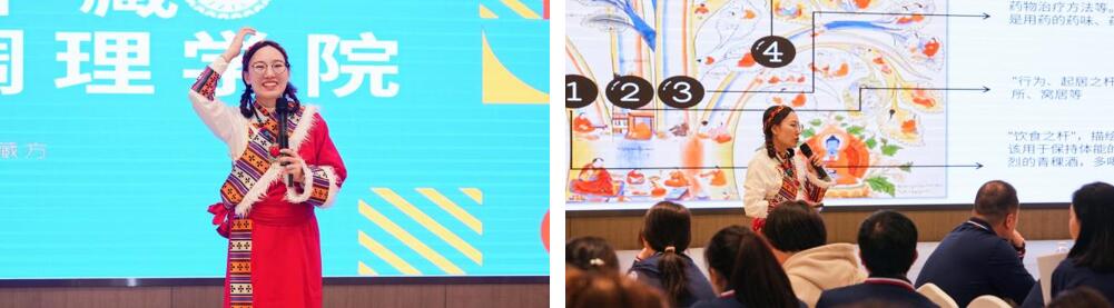 首先由陈怡如医生,为大家带来了一场名为“西藏印象”的晶珠中藏健康调理学院课程,陈医生从西藏三宝,引入到藏文化传承,再到树喻图,及藏医药学说,并在最后介绍了晶珠藏娃的大家长——晶珠藏药集团。