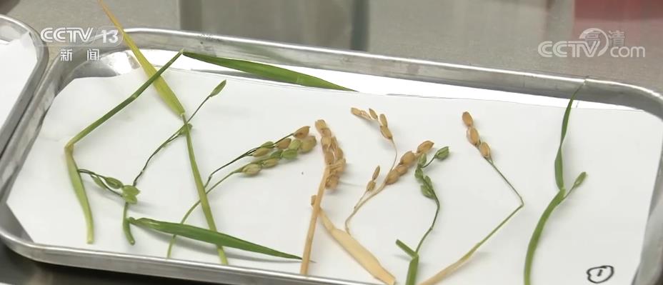 总台央视记者 张春玲:在中科院空间应用中心,实验人员正在对从太空返回的植物种子进行相关处理。他们要及时的进行分解和化学固化处理,在他们面前所摆放着这次太空中三粒植物种子收获的多株稻穗,可谓是硕果累累。