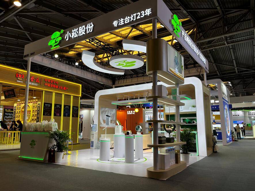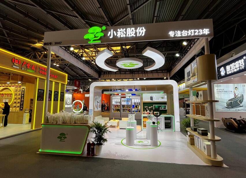 此次小崧股份展区配色简约利落,使用品牌主色调绿色,天然不失灵动。现场结合灯光营造出舒适的观展氛围,科技感满满,吸引了不少消费者的围观。