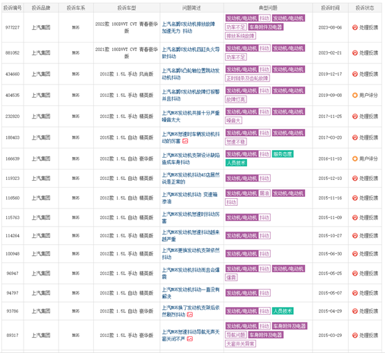 同时,记者通过相关投诉平台发现,关于名爵5发动机抖动异响的投诉大面积存在,且发动机抖动引起车身剧烈抖动,多数车主强调该情况普遍出现在车辆怠速时,部分车主反映开空调时抖动加剧:“开了空调跟开拖拉机一样,真的受不了。”