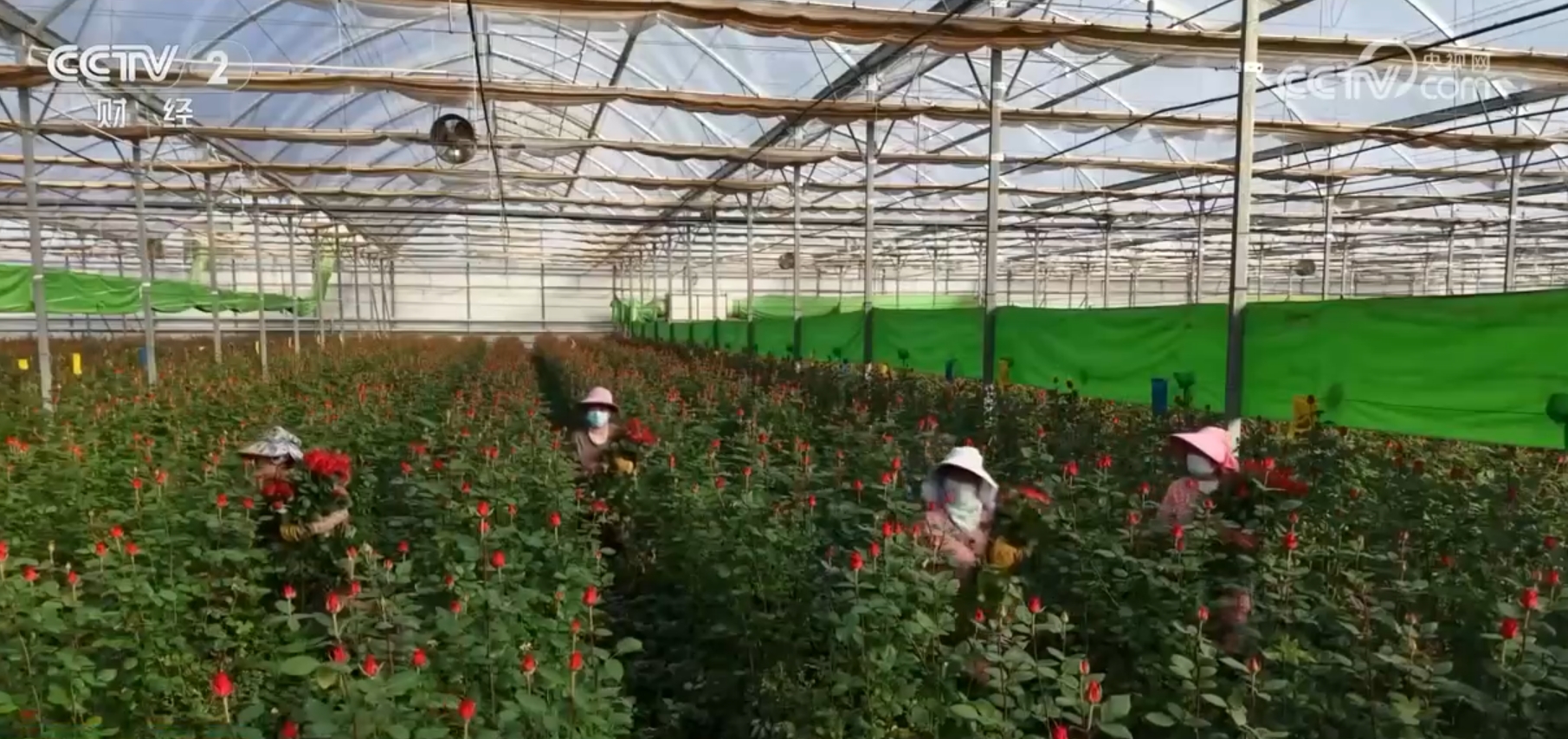 在这片250亩的花卉大棚里,种植了21个品种的玫瑰花。进入11月以来,基地每天能采收玫瑰花8万支。入冬后,鲜切花的价格逐渐上涨。