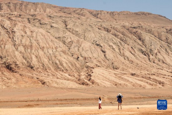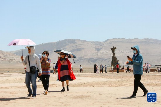 游客在位于吐鲁番市的火焰山景区游玩(6月27日摄)。