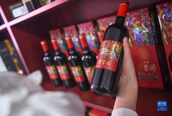 游客在位于吐鲁番市的葡萄沟景区选购葡萄酒(6月26日摄)。