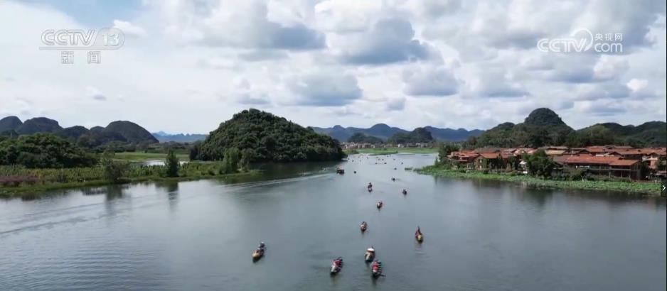 在云南普者黑,万亩荷塘花开正盛,游人不仅可以泛舟赏荷嬉戏,还能进入当地渔村感受彝族撒尼人生活文化和非遗技艺。
