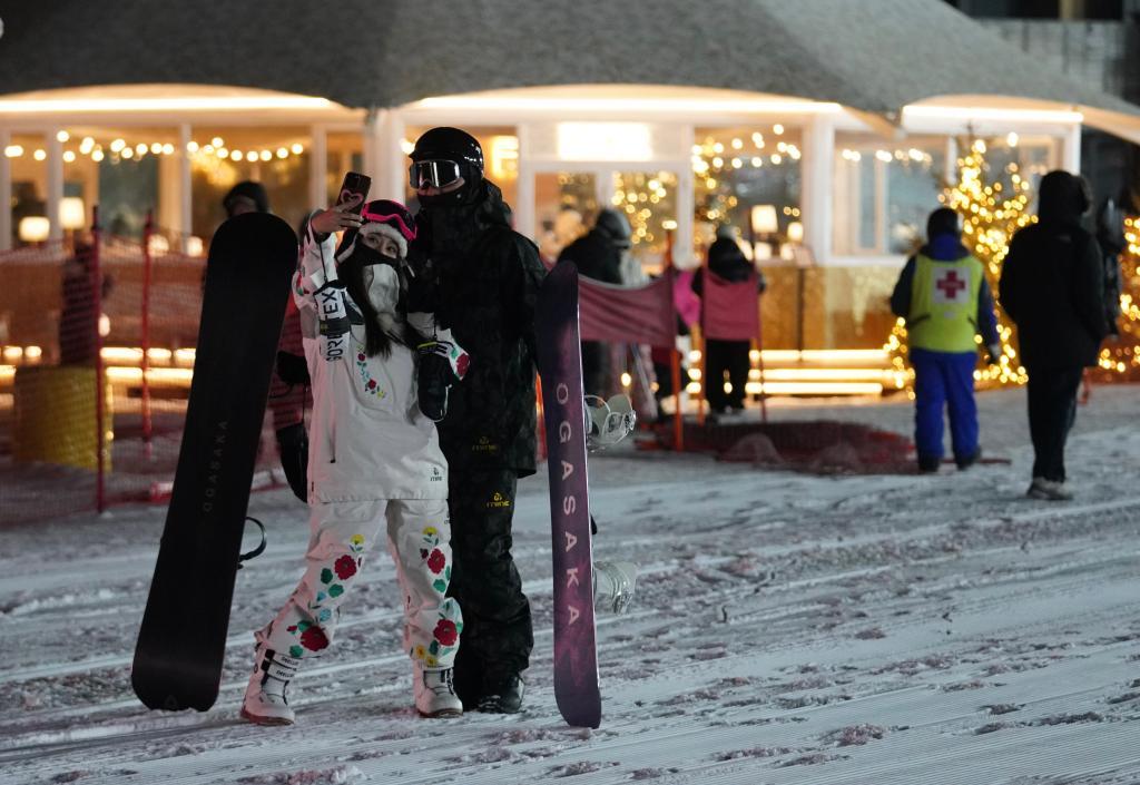2023年12月26日,游客打卡长白山云顶市集。新华社记者 司晓帅 摄
